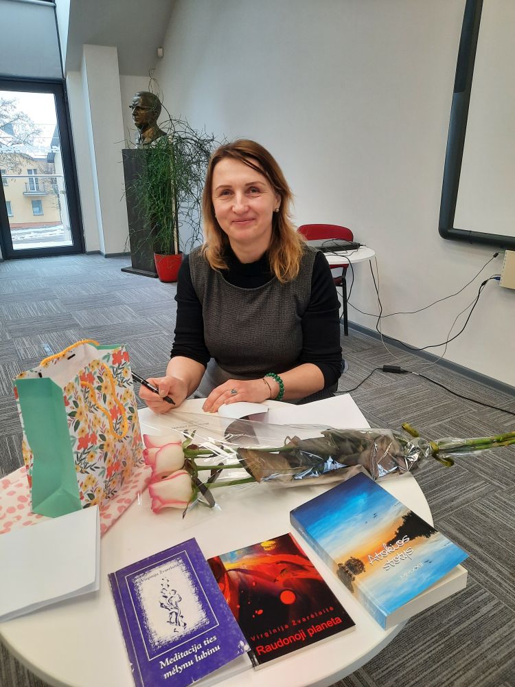 Molėtų TAU studentai, poezijos mylėtojai dalyvavo susitikime su kraštiete, poete, Molėtų rajono Kazio Umbraso literatūrinės premijos laureate Virginija Žvarėlaite. Susitikimą tema „Du žodžiai. Ir taškas“ vedė, poetę kalbino TAU klausytoja, poezijos mylėtoja Aldona Baranauskienė. Pokalbio metu prisilietėme prie poetės kūrybos ir ją įkvepiančios aplinkos – gamtos, žmonių, minčių ir jausmų pasaulio, klausėmės jos skaitomų eilėraščių iš poezijos knygelių „Meditacija ties mėlynu lubinu“ ir „Raudonoji planeta“, taip pat iš literatūros almanacho „Atokios stotys“. Dėkojame poetei Virginijai dovanas, už šį šiltą susitikimą ir nuoširdžiai linkime sėkmingų kūrybos ir įkvėpimo metų.