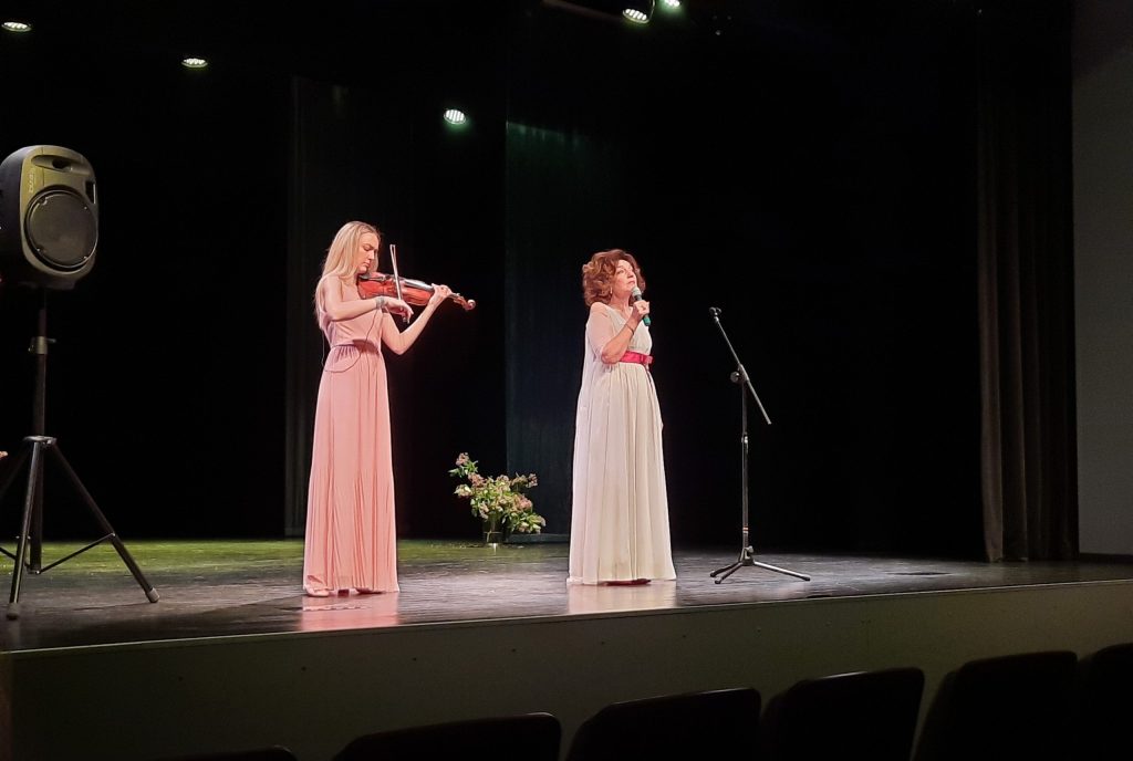 Nuostabų koncertą universiteto klausytojams dovanojo dainininkė Judita Leitaitė ir jos dukra smuikininkė Paulina Daukšytė.
