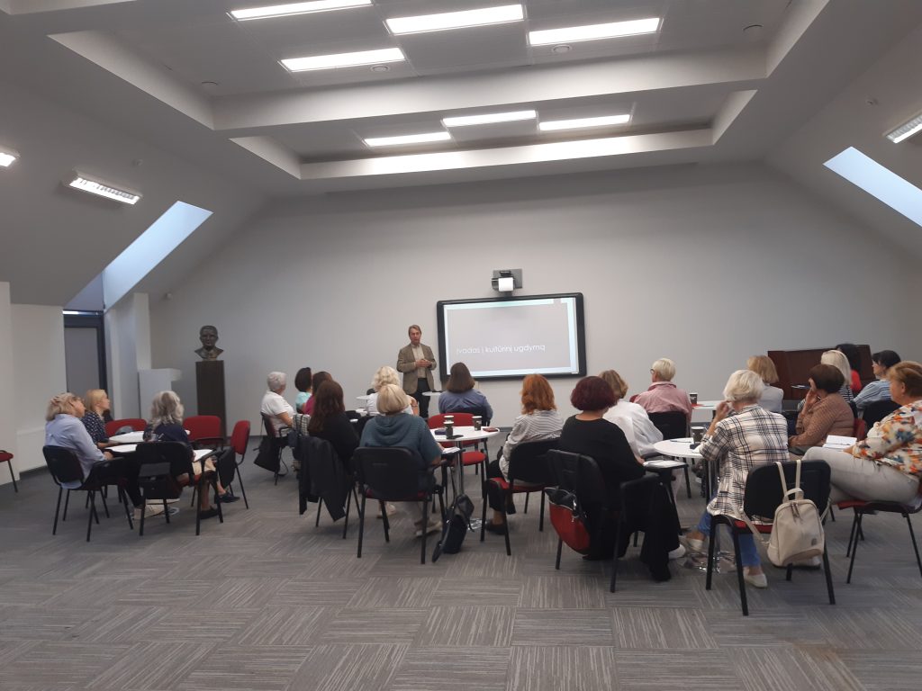 Rugsėjo 25 d. Molėtų viešosios bibliotekos konferencijų salėje lektorius, Klaipėdos Vydūno gimnazijos direktorius dr. Arvydas Girdzijauskas supažindino su kultūros samprata, kalbėjo apie asmens ir organizacijos kultūrą, asmens ugdymo idėjas, kultūrinio ugdymo modelius mokykloje, pristatė ugdymo turinio ir gyvenimo mokykloje galimybes. Užsiėmimo pabaigoje buvo patekta kūrybinė užduotis: naujo ugdymo turinio integravimas į formalųjį ir neformalųjį ugdymą, siekiant plėtoti mokinių kultūrinę kompetenciją.