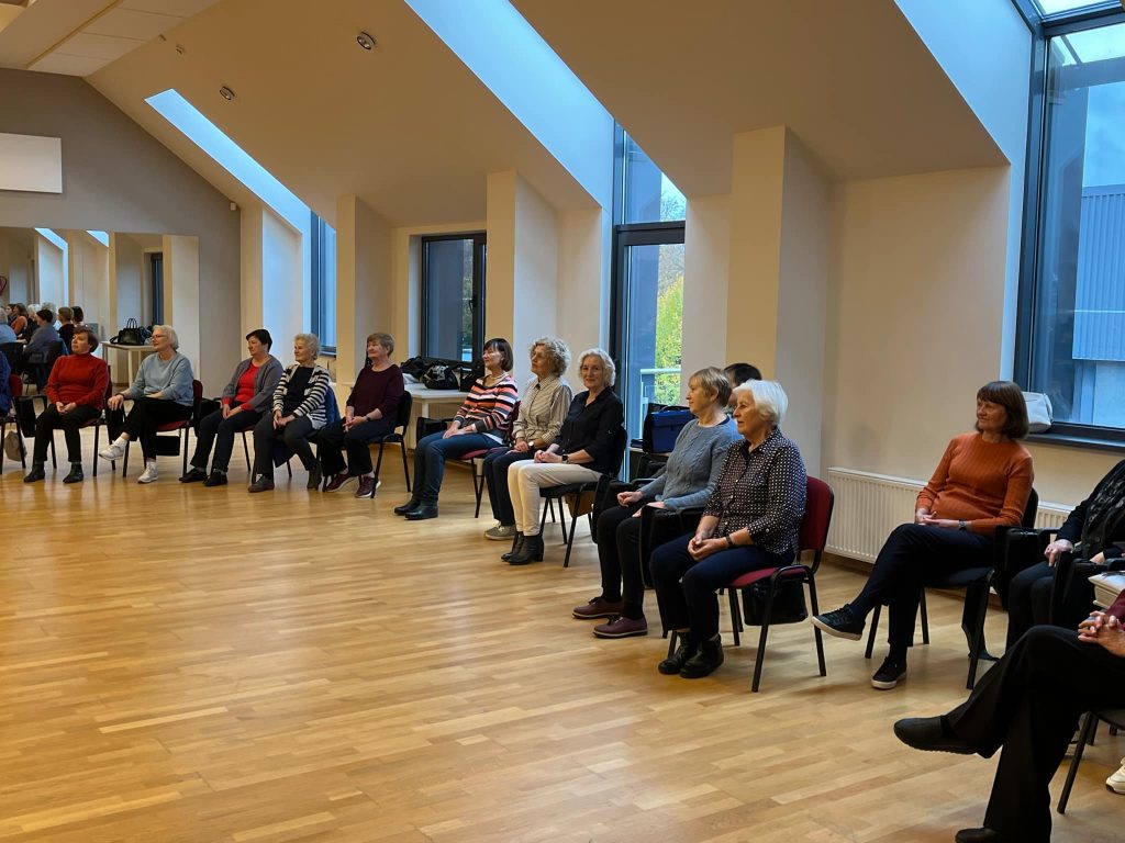 Štai tokią Gerų emocijų porciją Molėtų TAU studentai gavo Violetos Bimbirienės praktinėje paskaitoje „Ar dažnai juokiamės? Viskas apie juoko jogą.“