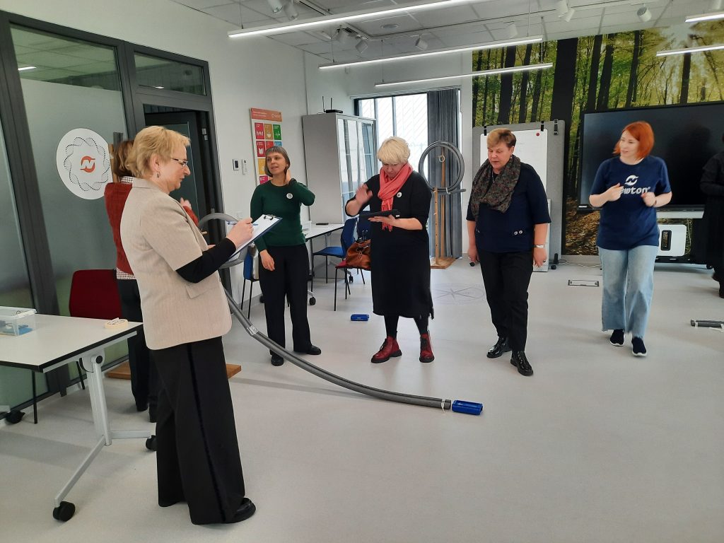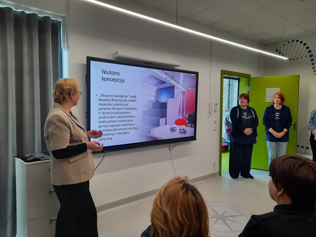 Pirmasis sustojimas buvo Visagino Verdenės gimnazijoje, kur lankėmės atvirose chemijos, biologijos, pradinių klasių STEAM ir robotikos pamokose, apžiūrėjome mokymosi erdves, pasidomėjome TŪM projekto vykdymo patirtimis. Gimnazijoje stebino STEAM mokytojų profesionalumas, naudojant STEAM praktinės veiklos organizavimo ir mokymo metodus, darant įtaką mokinių susidomėjimui STEAM mokslais ir pasiekimų augimui.